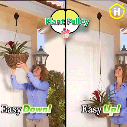 🌳🌱No more unsafe balancing on step ladders with heavy water cans! This handy pulley makes it easy to lower and raise your hanging baskets for watering, feeding, and plant care. A spring-loaded tape locks the basket in place at the desired height.